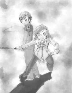 下書きの時点でマコが左手に刀を持ってることに気付く。